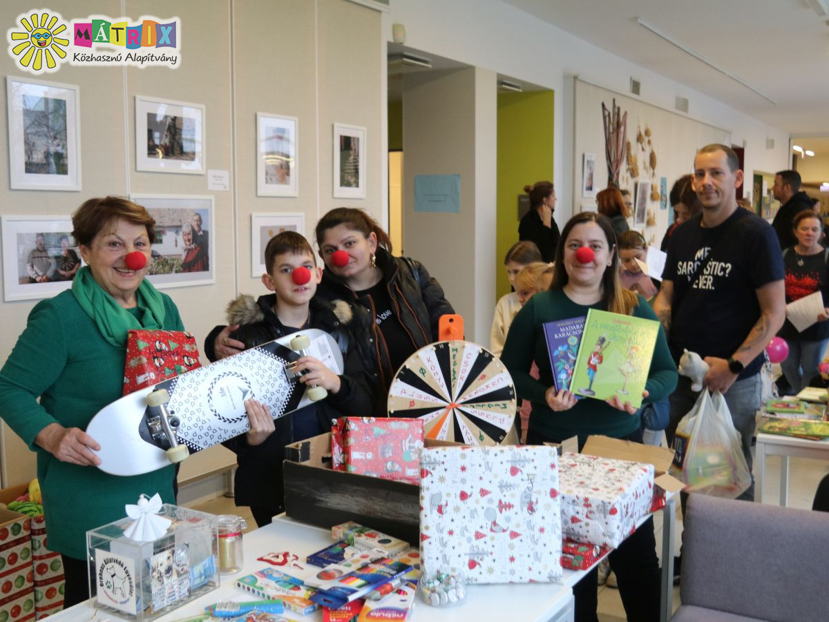 A Mátrix Közhasznú Alapítvány bohócdoktor csapata a szegedi Agóra falai között megrendezett Gyerekkarácsonyon mintegy ötszáz családot ajándékozott meg, hogy az ünnepek előtti időszak valóban a meghittségről és az örömről szóljon. Volt miből választani: laptop, gördeszka, társasjáték, plüssfigura, kártyák, írószerek, készségfejlesztő eszközök, könyvek, kirakós játékok várták a kisgyermekes családokat.